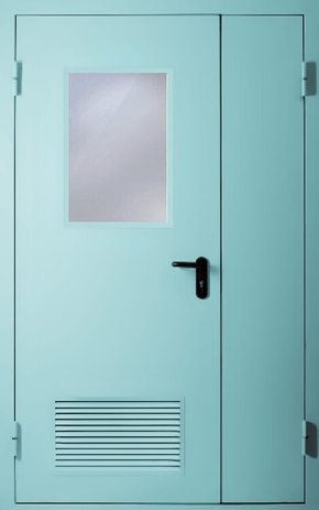 Полуторапольная противопожарная дверь с вентиляцией и стеклом EI 60 (RAL 2027)