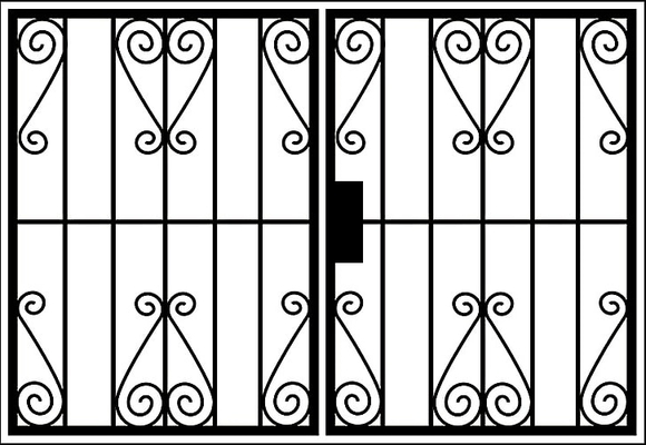 - Изделие комплектуют петлями и замком. Запирающее устройство может быть навесным или врезным. Для замка нужен специальный карман. Расстояние между прутьями распашной решетки должно быть не больше 10-15 см.