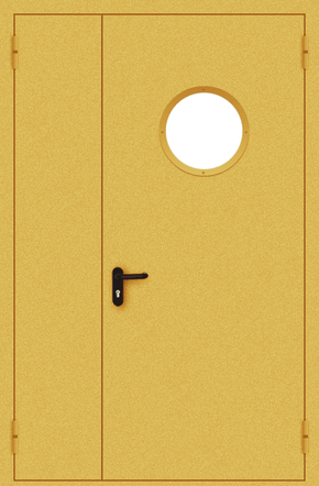 Полуторапольная противопожарная дверь с круглым стеклом (порошок / желтая)